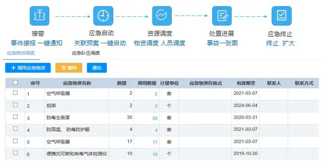 基于以上功能,可在事故发生时通过应急指挥中心的可视化大屏,协调警务、医疗、消防、应急物资等资源,进行一键通报、视频会议、语音调度等应急指挥调度工作;通过应急指挥管理系统,可实现接警、应急启动、资源调度、处置进展、应急终止的全过程智能化管理,实时通报共享事故状态,从而以最快的响应速度、最优的救援方案应对突发事故,把不良影响降到最低。