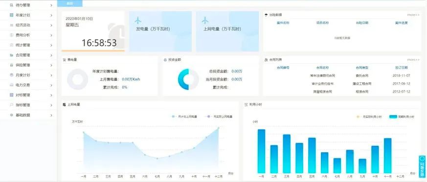 新能源经营分析管理系统是金现代公司基于新能源企业经营管理实际需求而研发的信息系统,提供年度计划、月度计划、指标分析、统计分析、费用分析、经营活动分析、合同管理、对标管理、电力交易、保险管理等功能,通过数据的梳理、分析和挖掘,帮助决策层快速了解企业的经营现状、发现企业运营的优势和劣势、提供企业经营管理决策的依据。