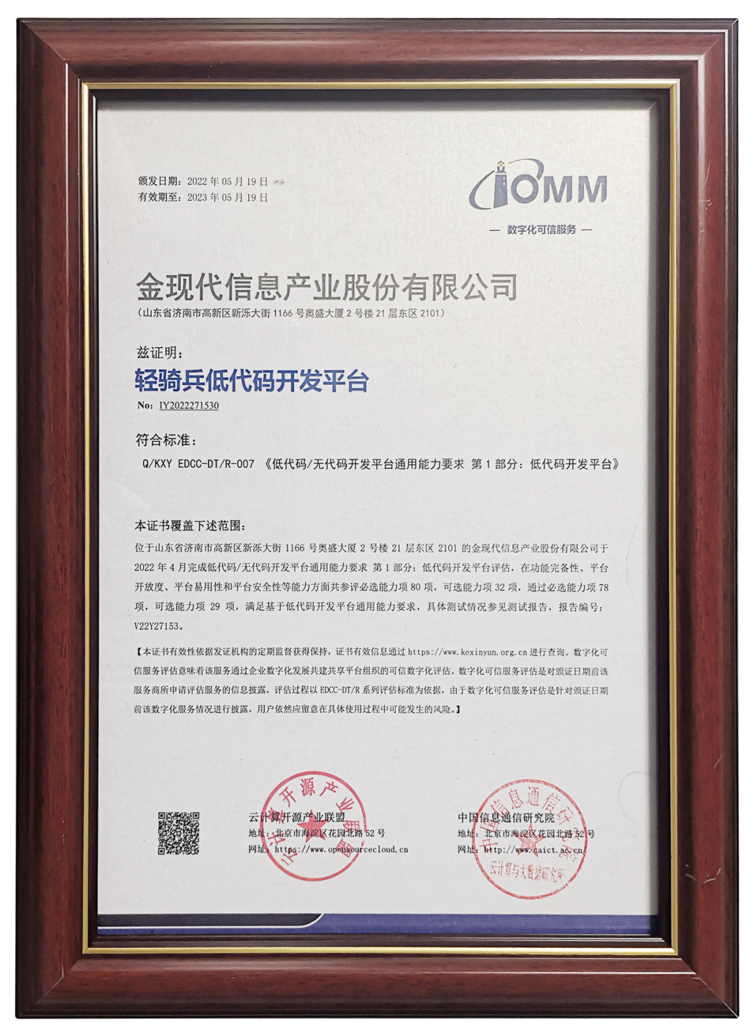 问题二:通过中国信通院评估测试,对于轻骑兵平台意味着什么?