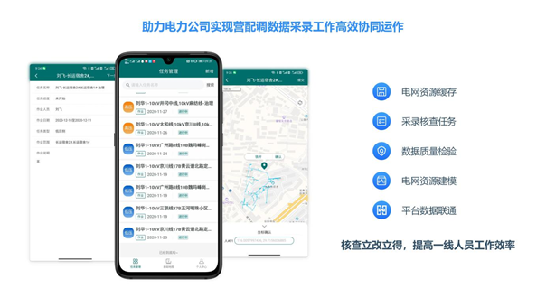 营配采录核查是一款旨在提高营配数据现场核查效率、提升采录质量、实现电网资源及时更新的微应用。该微应用以营销业务系统与电网GIS平台为基础支撑,以移动作业终端和手机为载体设计并开发营配采录核查功能,能够实现核查任务下发-现场数据核查-数据质量检验-成果数据入库的作业全流程闭环管控,达到采录作业标准化、数据成果规范化的目的,从管理手段上有效保障数据与现场的一致性,通过营销业务应用系统、GIS系统、PMS系统、数据结构化平台等多系统互联,实现营配数据现场核查立改立得,提高一线工作人员的获得感,确保电网资源及时更新、实时有效。