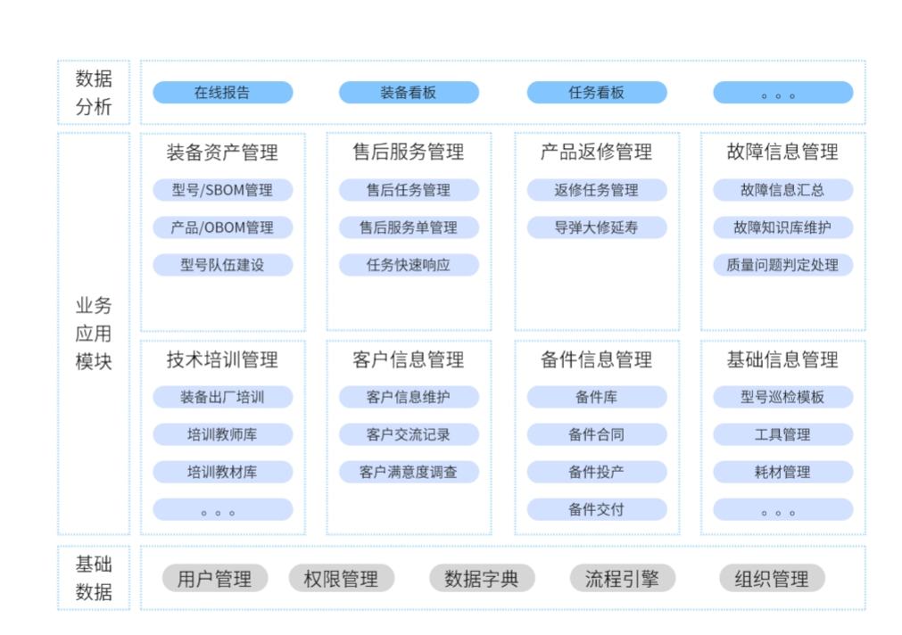 MRO一款专为军工行业量身打造的产品,旨在全方位支撑产品的售后服务工作。该系统能够构建完备的产品 BOM 数据,并以此为基础,对产品的售后任务、返修任务、故障信息等进行高效维护与管理。同时,系统具备强大的数据处理能力,可从多个维度对售后数据展开深入统计分析,助力工作人员精准把握当前售后状态,进而为后续售后工作的科学决策提供有力的数据支撑与服务。