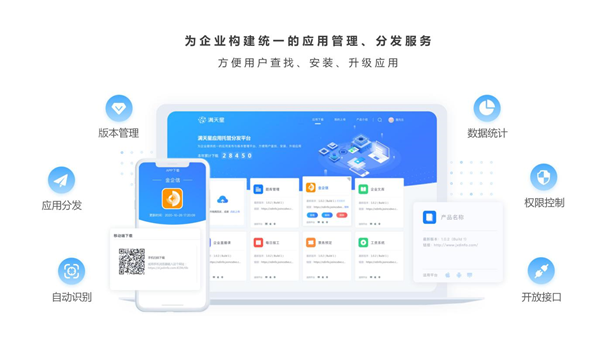 • 应用分发:一键上传应用,扫描二维码下载,一分钟完成应用发版;