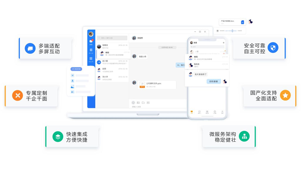 快速集成,方便快捷:提供即时通讯SDK,可将即时通讯快速集成到业务系统中;