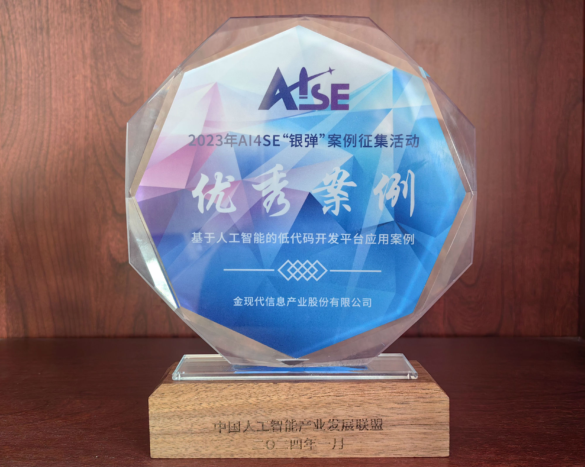 1月25日,由中国信息通信研究院、中国人工智能产业发展联盟等单位共同发起的AlIA大模型应用行--走进代码大模型暨“AI4SE创新巡航”活动顺利举行,金现代作为中国信通院AI4SE工作组成员单位,与众多AI领域头部厂商共同受邀参会。活动现场,公司申报的“基于人工智能的低代码开发平台应用案例”获评2023年AI4SE“银弹”优秀案例。