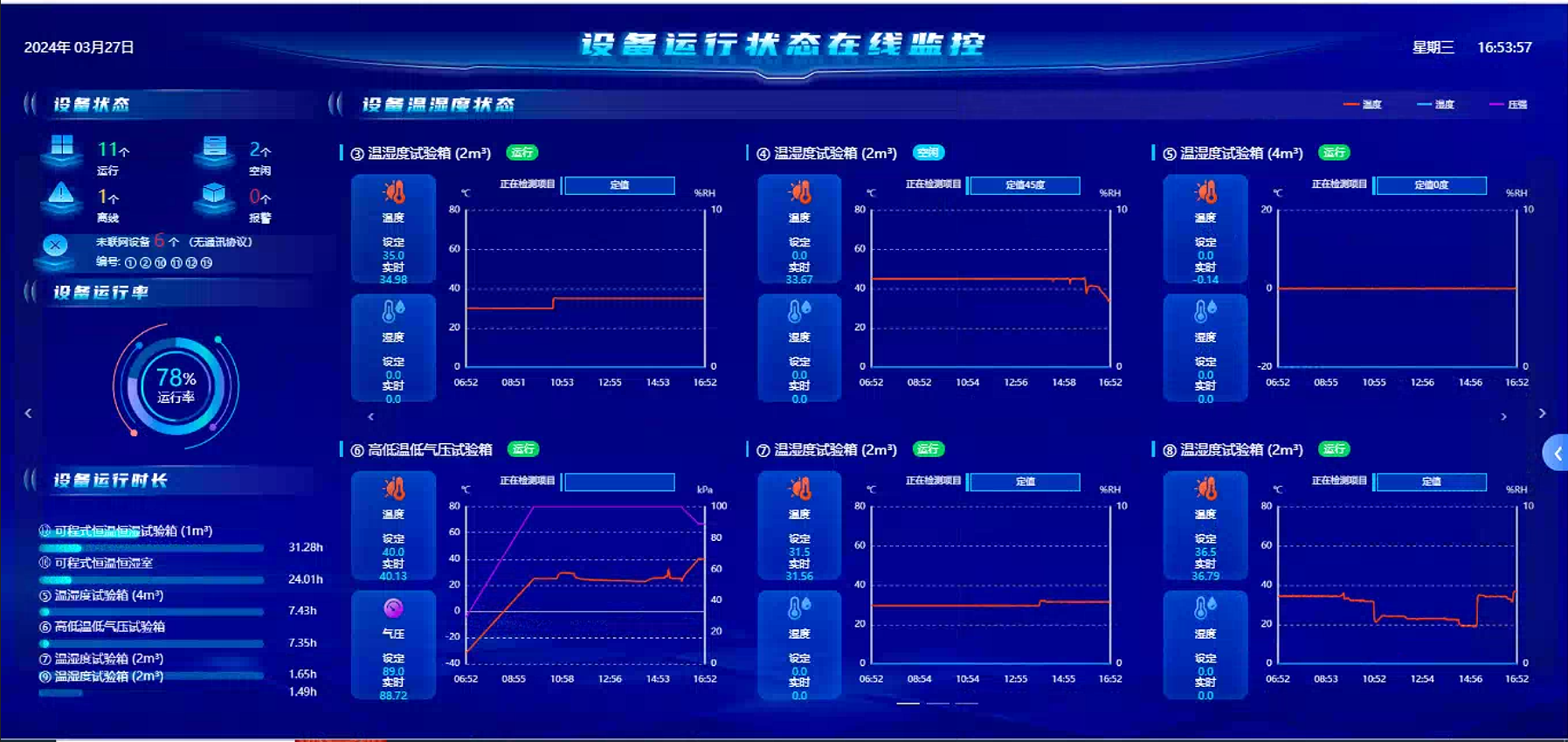 浪潮信息的实验室每天要进行机械环境类(水平冲击测试、抗压测试、自由跌落测试、关机冲击测试......)、气候环境类(高温测试、低温测试、Quality测试......)等实验,需要时刻关注设备状态,以提高设备管理的效率和准确性,确保设备的正常运行和数据的可靠性。金现代LIMS通过数据采集实现实验室设备实时监控。