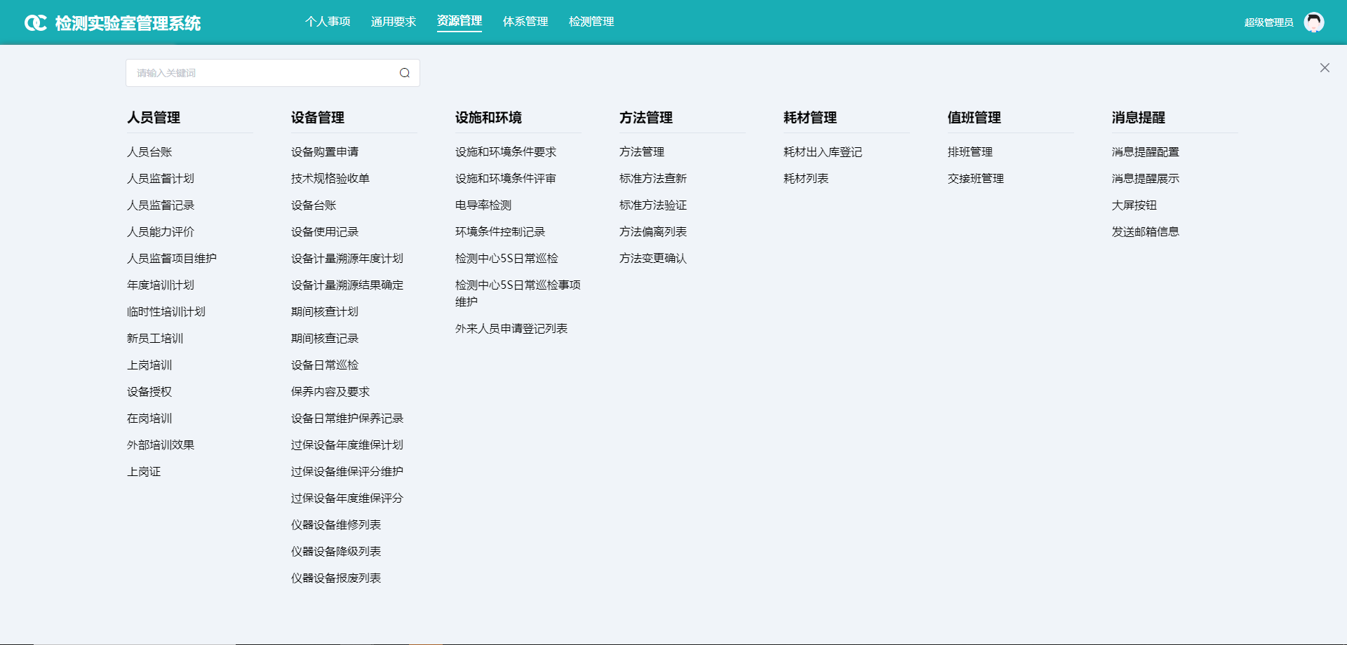 浪潮信息的实验室是典型的电子实验室,实验类型主要包括:EMC、机械、材料、安规、性能等。浪潮信息对于LIMS实验室管理系统的的需求包括资源管理(人员管理、设备管理、环境及设施管理、标准方法)、检测业务过程管理(检测业务、样品管理)、查询统计、数据采集、体系运行管理、系统管理、移动端应用等几大模块,其中资源管理、查询统计、数据采集、体系运行管理为核心诉求。
