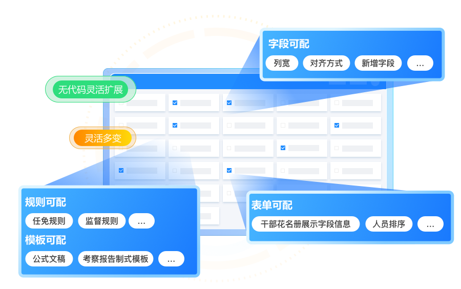 表单可配:如干部花名册展示字段信息、人员排序等。