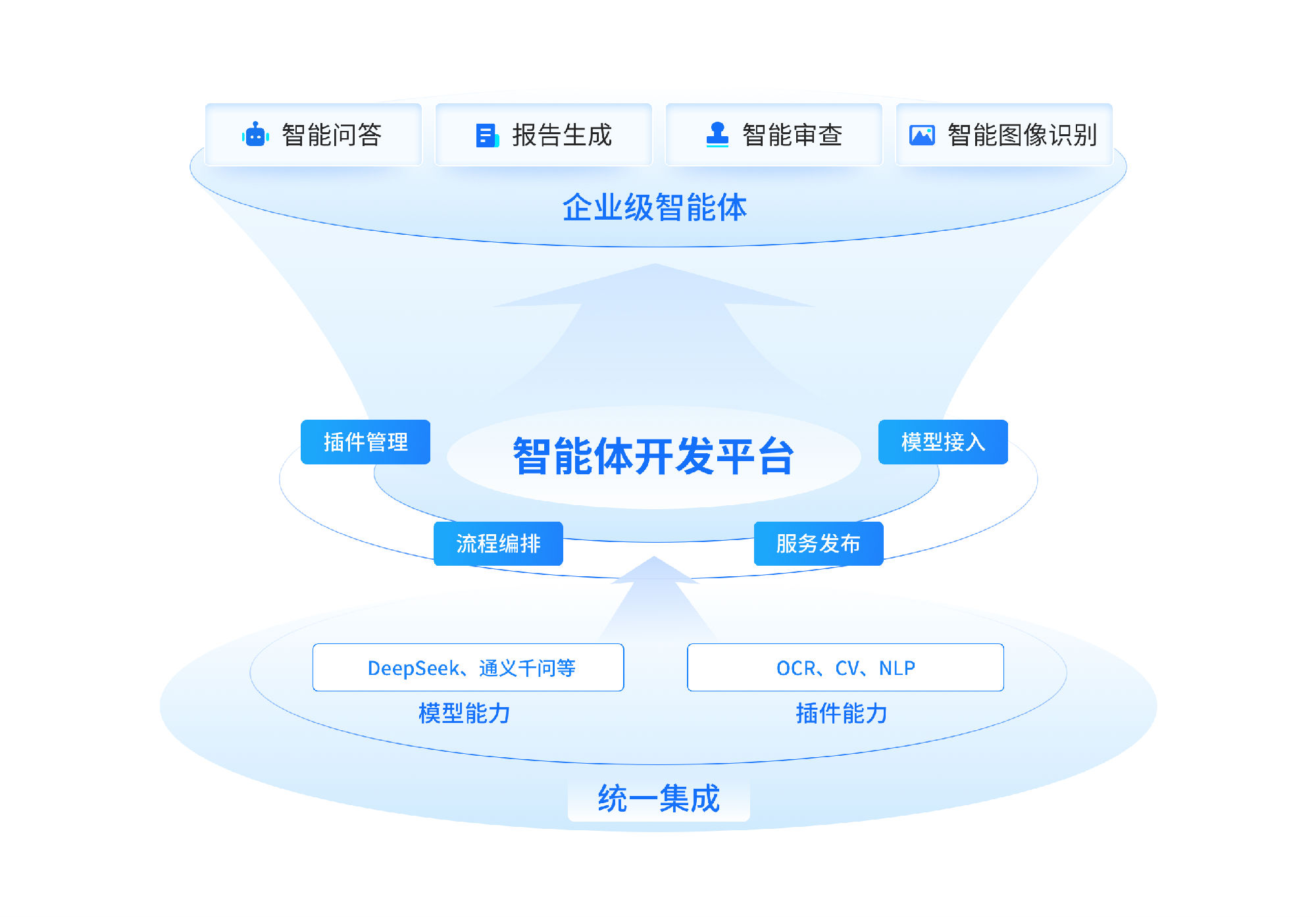 智能体能力体系通常由具备强推理能力的大模型,支撑流程编排与任务调度的平台框架,覆盖多类业务任务、具备专业执行能力的插件构成,三者协同构建起企业智能化应用的核心引擎。也就是说智能体将大模型植入“大脑皮层”,并通过平台框架与插件来让想法变成现实,实现感知、决策、行动的完美结合。