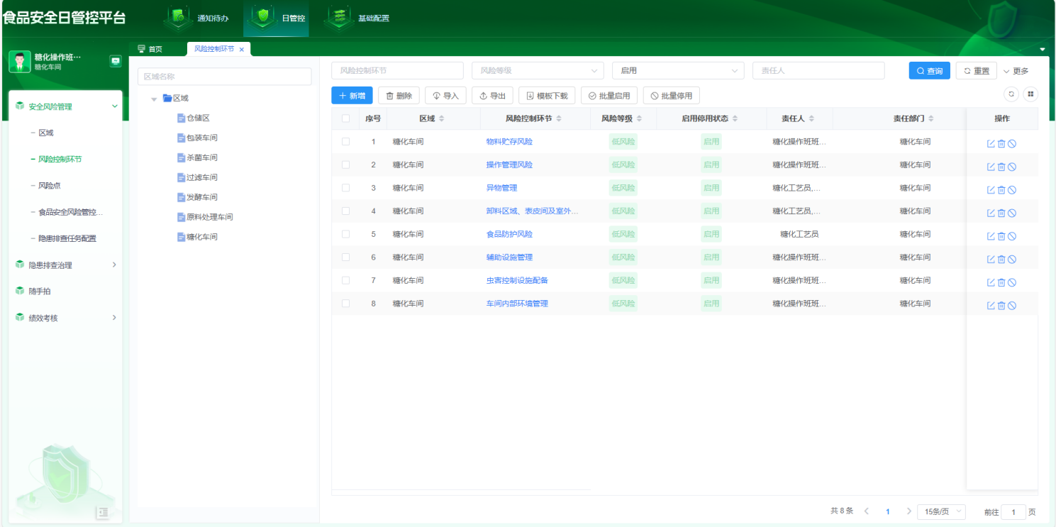 构建标准化日管控风险管控体系,依据区域、风险控制环节、风险点等信息,自动生成安全风险管控清单,实现风险的分级管控,并将责任分解到各层级岗位,确保管控措施得到有效实施。