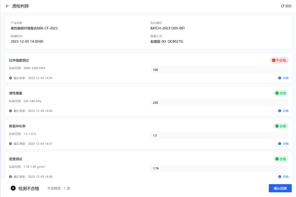 此外,系统会自动留存质检现场照片,通过“数据 + 现场照片”的双重验证机制,留存完整质检痕迹,让每一组数据都可追溯、可验证,显著提升质检过程的严谨性与可信度。