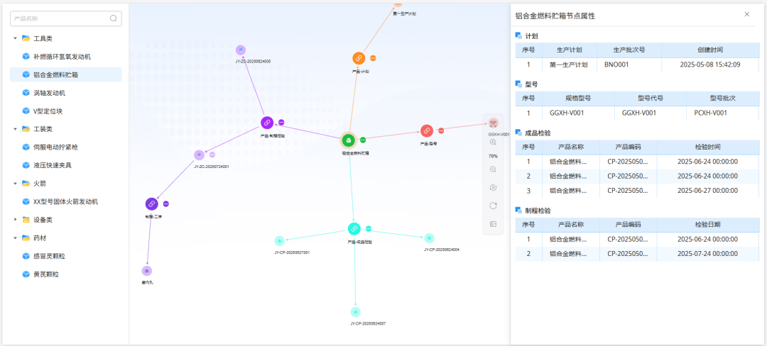 金现代质量管理系统(QMS)通过知识图谱技术,构建了覆盖“人、机、料、法、环”全要素的质量数据网络,实现了质量溯源的重要突破:
