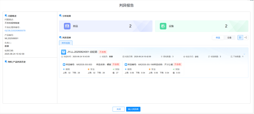 • 自动定位问题节点,如某批次原材料缺陷、某工序工艺偏差或设备异常,为后续纠正措施(如调整工艺、更换供应商)提供精准依据。