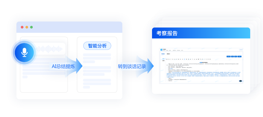 •报告成稿时:系统能够自动整合数十人的对话记录,并利用大模型精确地辨识出对话内容中的关键信息。通过综合考虑参与谈话者的职位类别、组织层级等多维度信息,依据“德、能、勤、绩、廉”五大核心评价指标,系统将进行深入的分析与智能化的提炼工作,最终生成一份逻辑条理清晰、重点明确的个性化考察报告。此外,系统还支持在线编辑与润色功能,用户可根据实际需求对报告内容进行调整,一键输出“千人千面”的个性化报告。