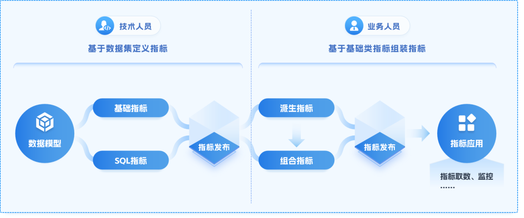 这样一来,技术人员专心搭数据模型、定基础指标和 SQL 指标,业务人员聚焦拼派生指标和组合指标,各个干擅长的事,效率能提不少。
